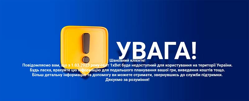 “Шановний клієнте! Повідомляємо вам, що з 1.03.2023 року сайт 1xBet буде недоступний для користування на території України…” – такую надпись увидели все, кто пытался на днях зайти на сайт скандального российского 1xBet.