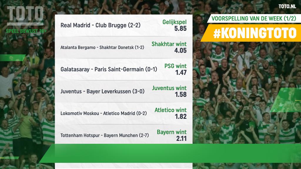 Наибольшими коэффициентами были 5,85 за ничью "Брюгге» и «Реала" в Мадриде, а также 4,05 за гостевую победу "Шахтера" над "Аталантой".