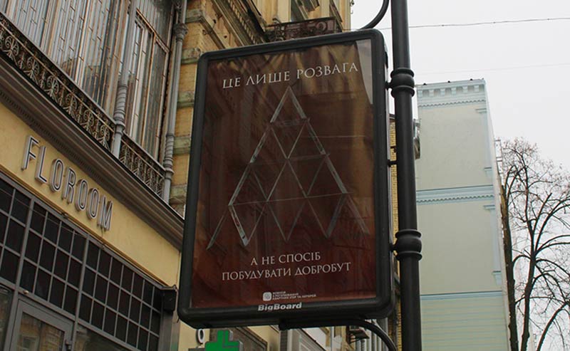 Комиссия по регулированию азартных игр и лотерей еще в конце октября обращалась к общественности с призывом принять участие в разработке креатива для социальной кампании. Заявленный функционал – привлечь внимание к проблеме игровой зависимости, призвать зависимых к изменению поведения и подчеркнуть, что азартные игры – это отдых, а не заработок. И вот киевляне смогли увидеть результаты работы Комиссии – ситилайты с изображением карточного домика и текстом "це лише розвага, а не спосіб побудувати добробут".