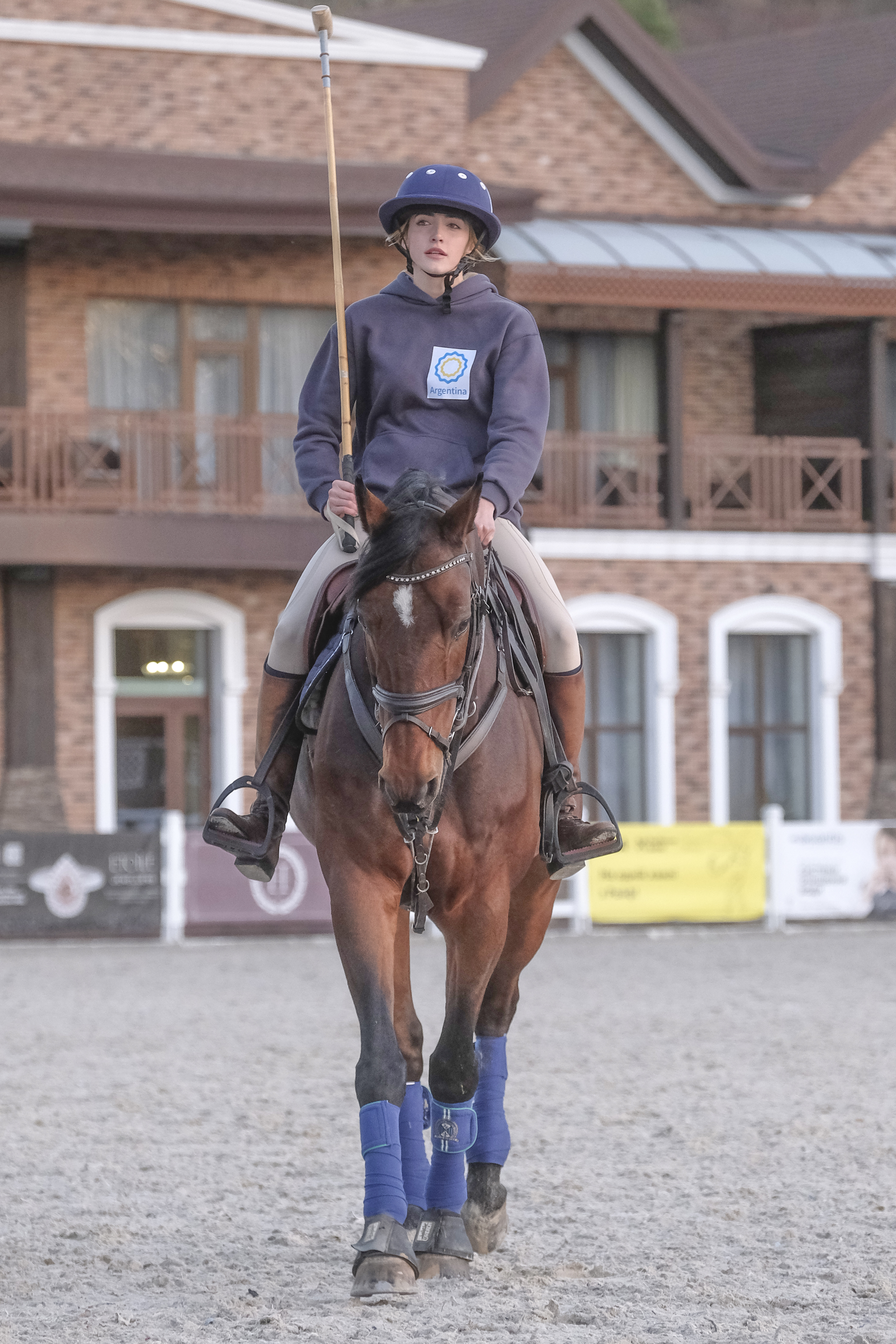 Також ми розпочали роботу в іншому напрямку – відкриті тренування для вершників, які проводились на базі кінної поліції міста Києва, на іподромі. Зібралася чимала група – близько 20 спортсменів, які займаються кінним спортом. Все це розвивалося "на ентузіазмі", ми спиралися на знання наших гравців - кілька людей пройшли навчання в університетських командах Англії.