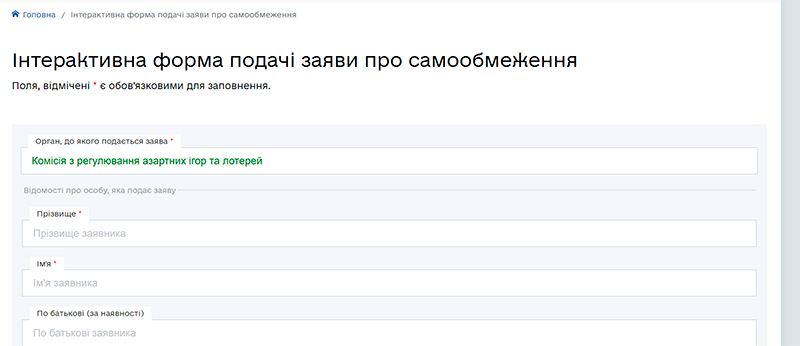 Подати заяву на самообмеження онлайн можна на сайті КРАІЛ.